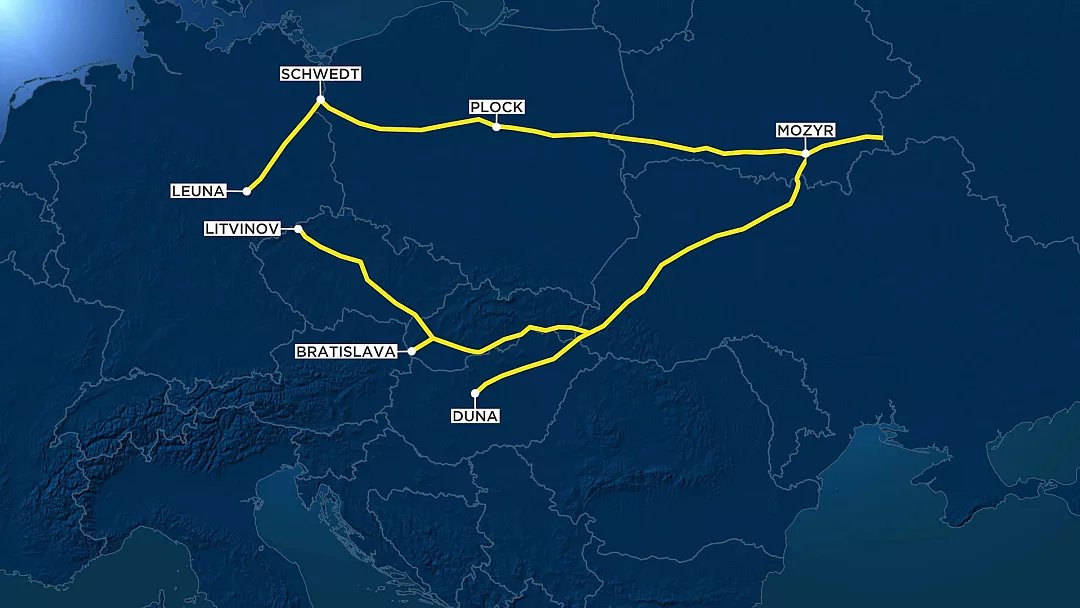 The Druzhba pipeline feeds directly into several oil refineries across the European Union | Credit: Euronews (May 31, 2022)