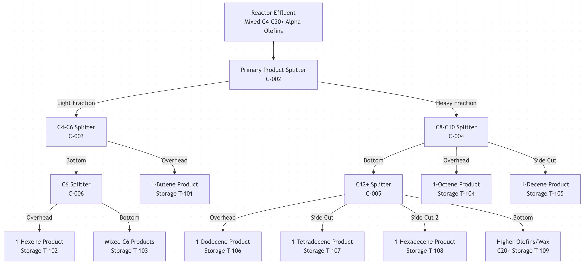 - Product Separation: Linear alpha olefins separated by multi-stage distillation