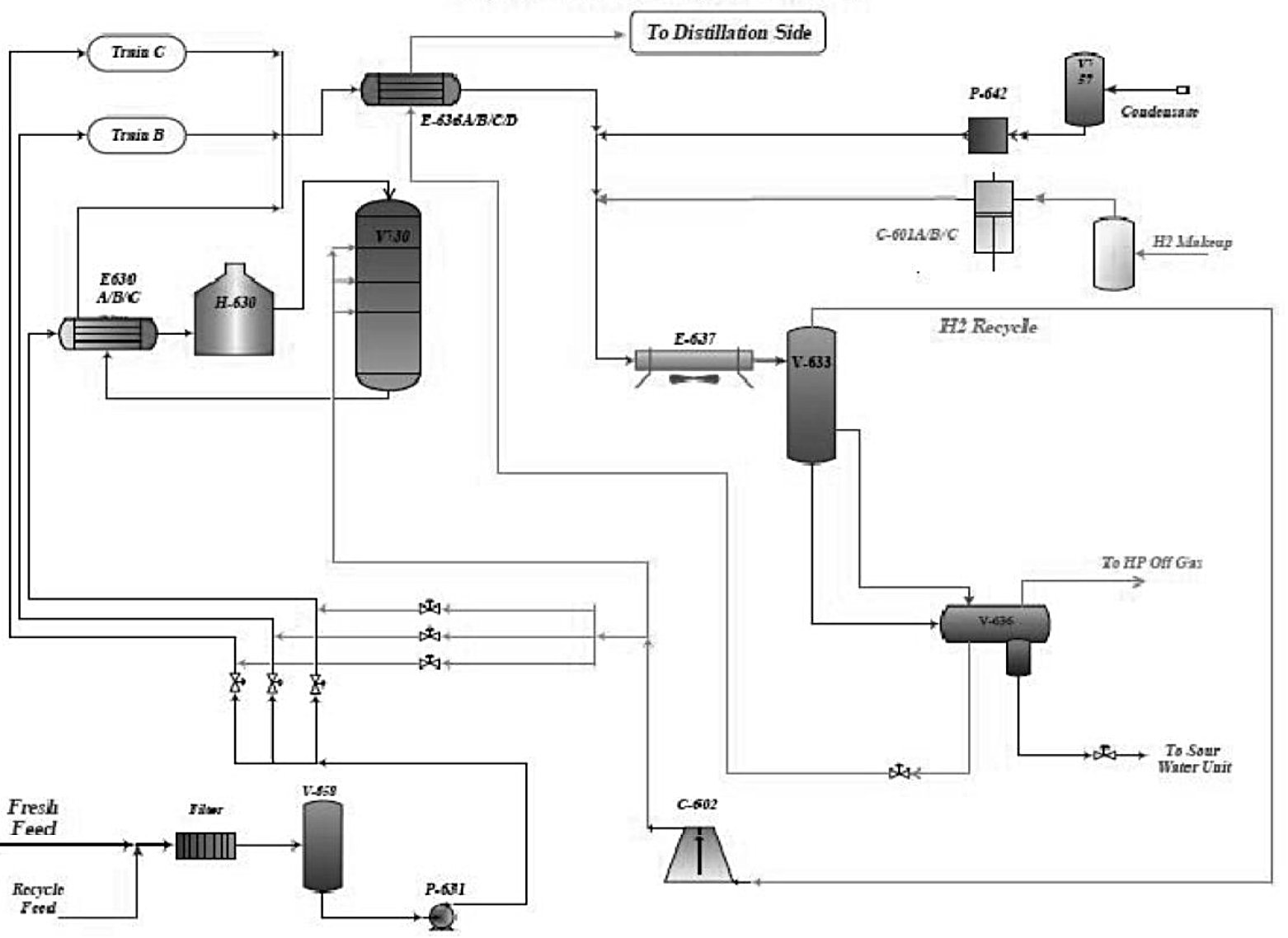 - Reactor section: Contains fixed-bed reactors where hydrocracking reactions occur