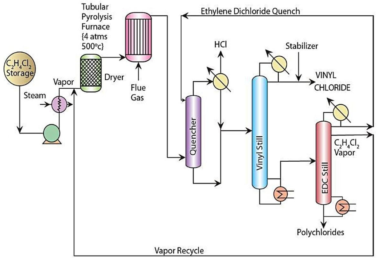 - Unconverted EDC is separated in VCM distillation and recycled to the cracking furnace after purification