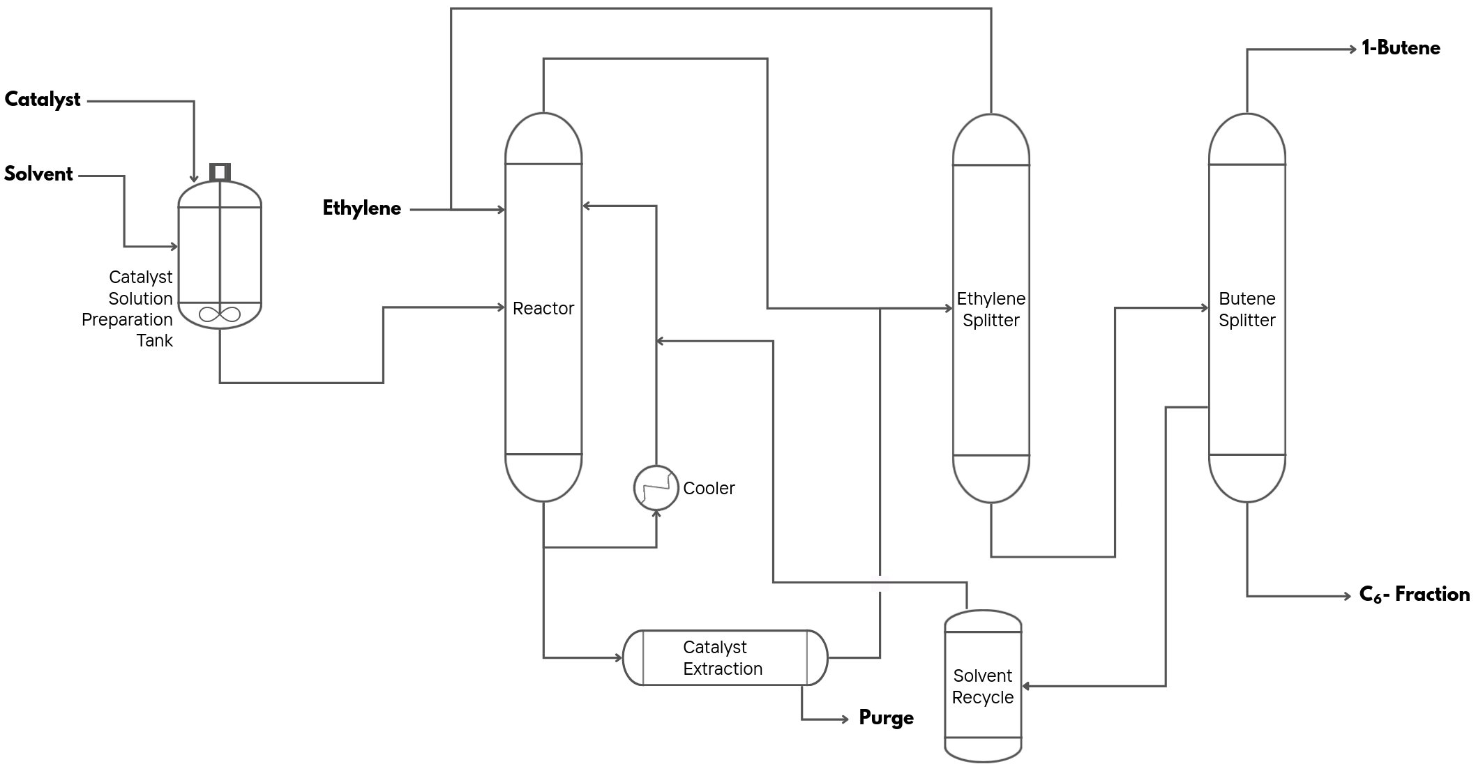 Figure 3 - Oligomerization of ethylene in 1-butene - Simplified PFD, adapted from Belov and Matkovsky[2]