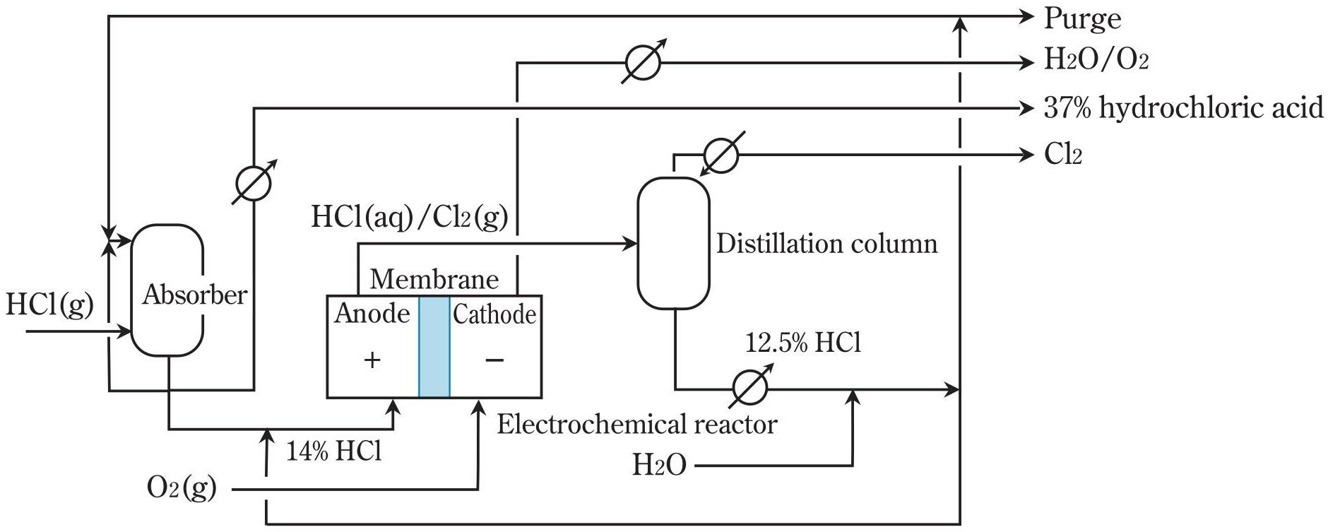 - Primary feed: 30 wt% HCl to catholyte compartment