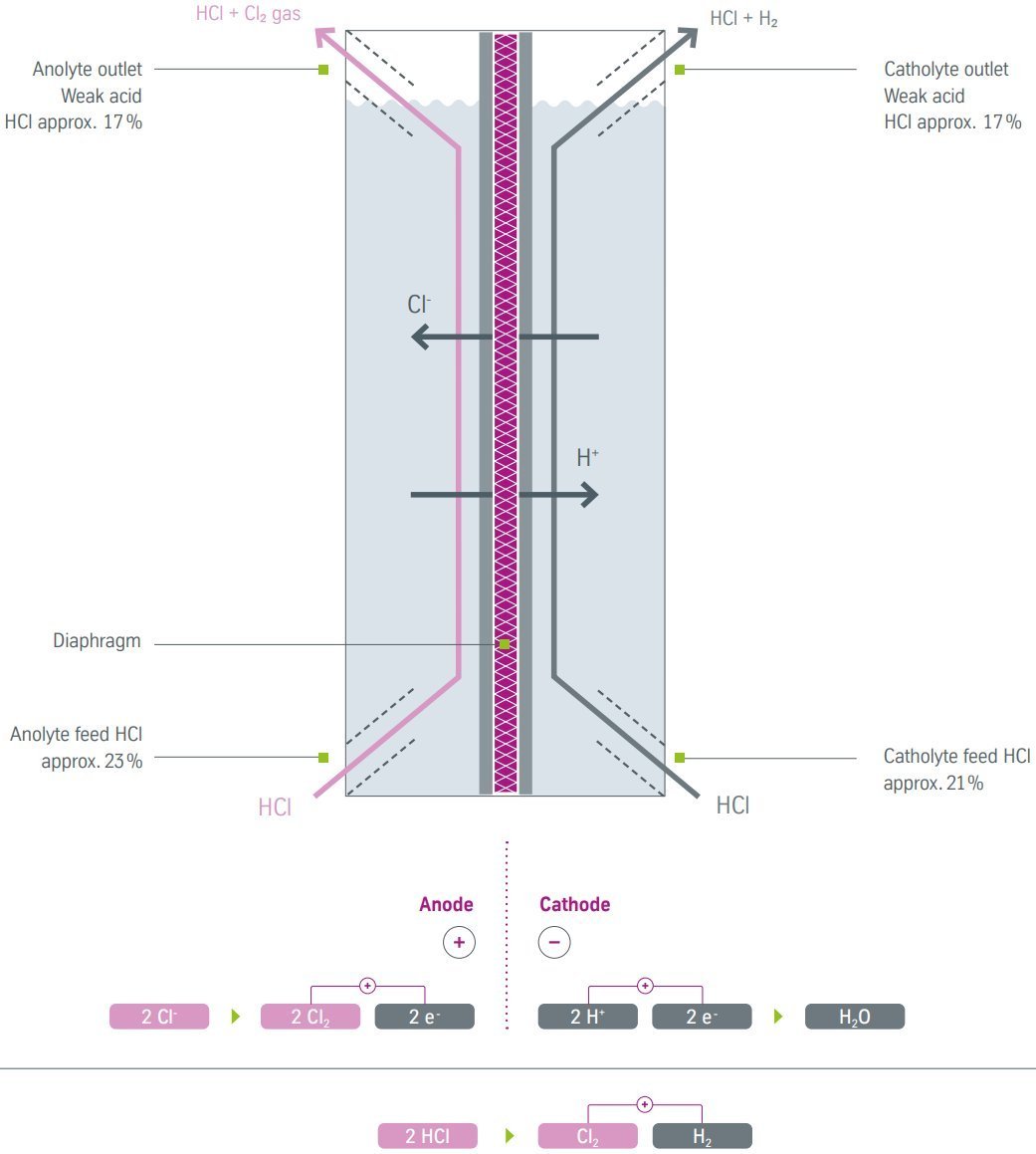 Figure 2 - HCl electrolysis via the diaphragm process[1]